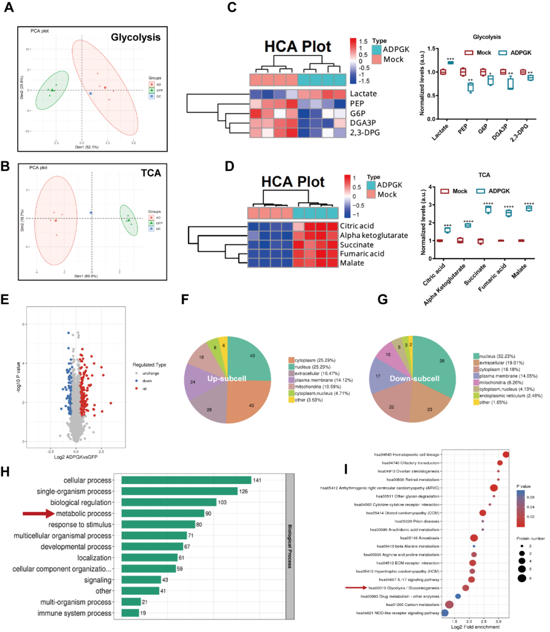 代谢组学和蛋白组学结果显示ADPGK促进了前列腺癌糖酵解(图5)。