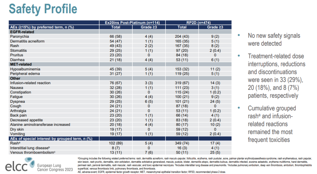 我在2023 ELCC会议报告了CHRYSALIS研究更新的amivantamab治疗铂经治EGFR ex20ins晚期非小细胞肺癌患者的数据。除了两个EGFR常见突变(EGFR的19外显子缺失突变和21号外显子L858R突变)非常重要,还有第三个重要的EGFR突变是EGFR外显子20插入突变,在EGFR阳性非小细胞肺癌中占比约12%。对于EGFR外显子20插入突变患者亚组,目前可用的针对性治疗药物有单克隆抗体amivantamab以及口服TKI药物mobocertinib(莫博赛替尼)。基于CHRYSALIS研究数据,美国食品药品监督管理局(FDA)和欧洲药品管理局(EMA)已经批准了amivantamab治疗铂类化疗后进展的EGFR外显子20插入突变转移性NSCLC患者。