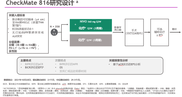 5.Spicer J,Wang CL,Tanaka F,et al.Surgical outcomes from the phase 3 CheckMate 816 trial:Nivolumab(NIVO)+platinum-doublet chemotherapy(chemo)vs chemo alone as neoadjuvant treatment for patients with resectable non-small cell lung cancer(NSCLC)[EB/OL].ASCO 2021,abstract 8503.