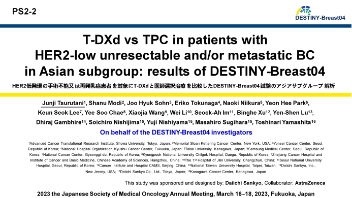 第20届日本肿瘤内科学会年会(JSMO 2023)于2023年3月16~18日在日本福冈举行。本届大会以“癌症、科学与生命”为主题,回顾了近期肿瘤的科研及临床成果,其中的DESTINY-Breast04研究分析了T-DXd治疗HER2-Low转移性乳腺癌的亚洲数据,为亚洲患者带来更多治疗希望。