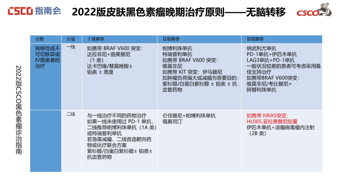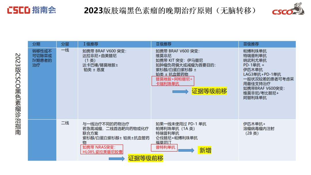2023版CSCO黑色素瘤诊疗指南晚期治疗更新要点