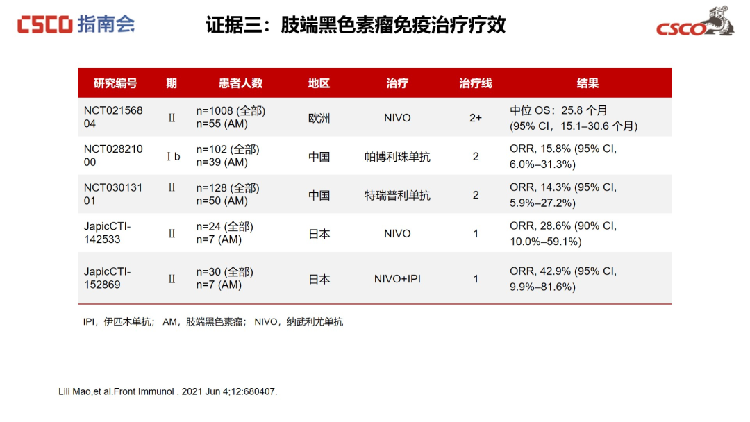 证据三:肢端黑色素瘤免疫治疗疗效[6,7]