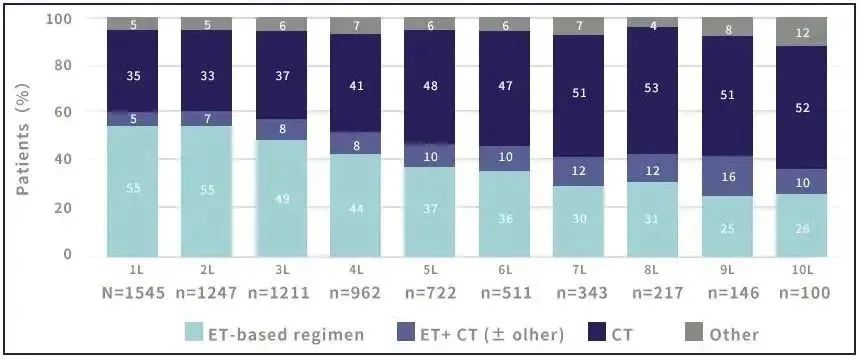 美国接受化疗(CT)的HR+/HER2-晚期乳腺癌患者的真实世界治疗(Tx)模式