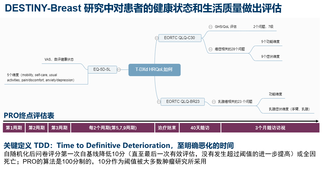 肿瘤瞭望:在乳腺癌领域,DESTINY-Breast系列研究陆续报道疗效和安全性数据之后,也在逐步披露PRO数据。请您介绍一下DESTINY-Breast系列研究PRO数据的采集和分析方法?