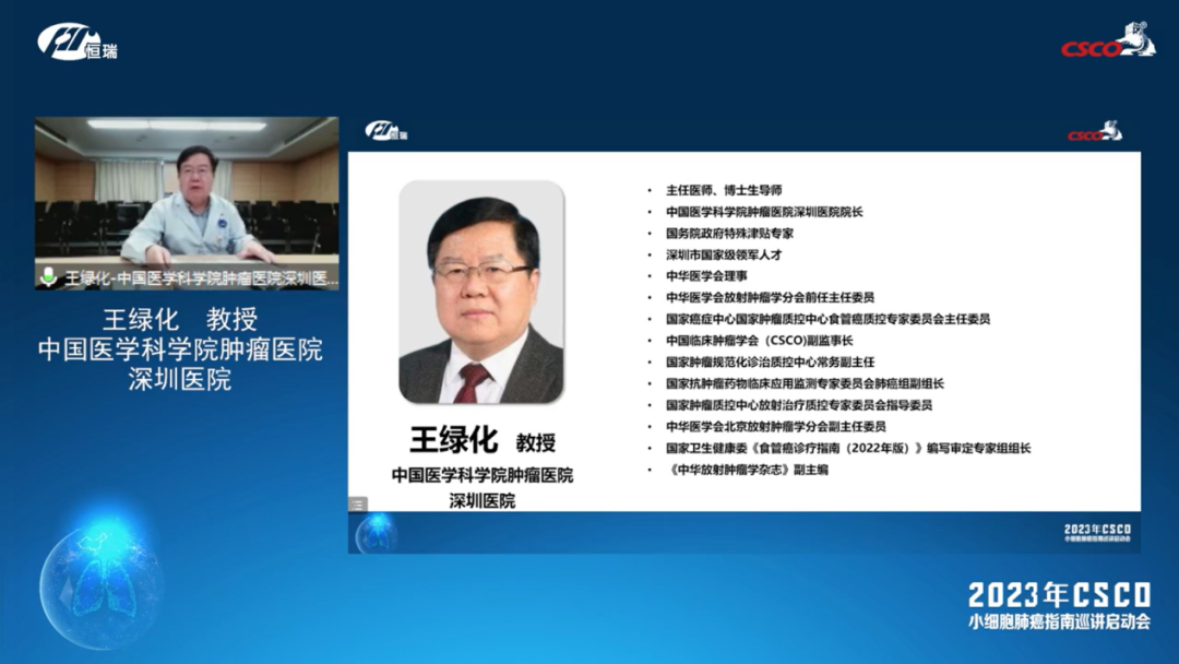 在此背景下,为进一步推动小细胞肺癌规范化诊疗的落实、传递前沿学术进展和先进治疗理念,由中国临床肿瘤学会小细胞肺癌专家委员会主办,江苏恒瑞医药有限公司协办的2023年CSCO小细胞肺癌指南巡讲启动会于2023年5月23日成功召开。本次会议特邀CSCO小细胞肺癌专委会主任委员吉林省肿瘤医院程颖教授和副主任委员中国医学科学院肿瘤医院王洁教授、中国医学科学院肿瘤医院深圳医院王绿化教授共同担任大会主席,来自全国多家医院的知名专家学者齐聚一堂,共同解读指南更新要点。立足新起点,肺跃新征程,践行指南,中国力量。以下整理会议精粹,以飨读者。
