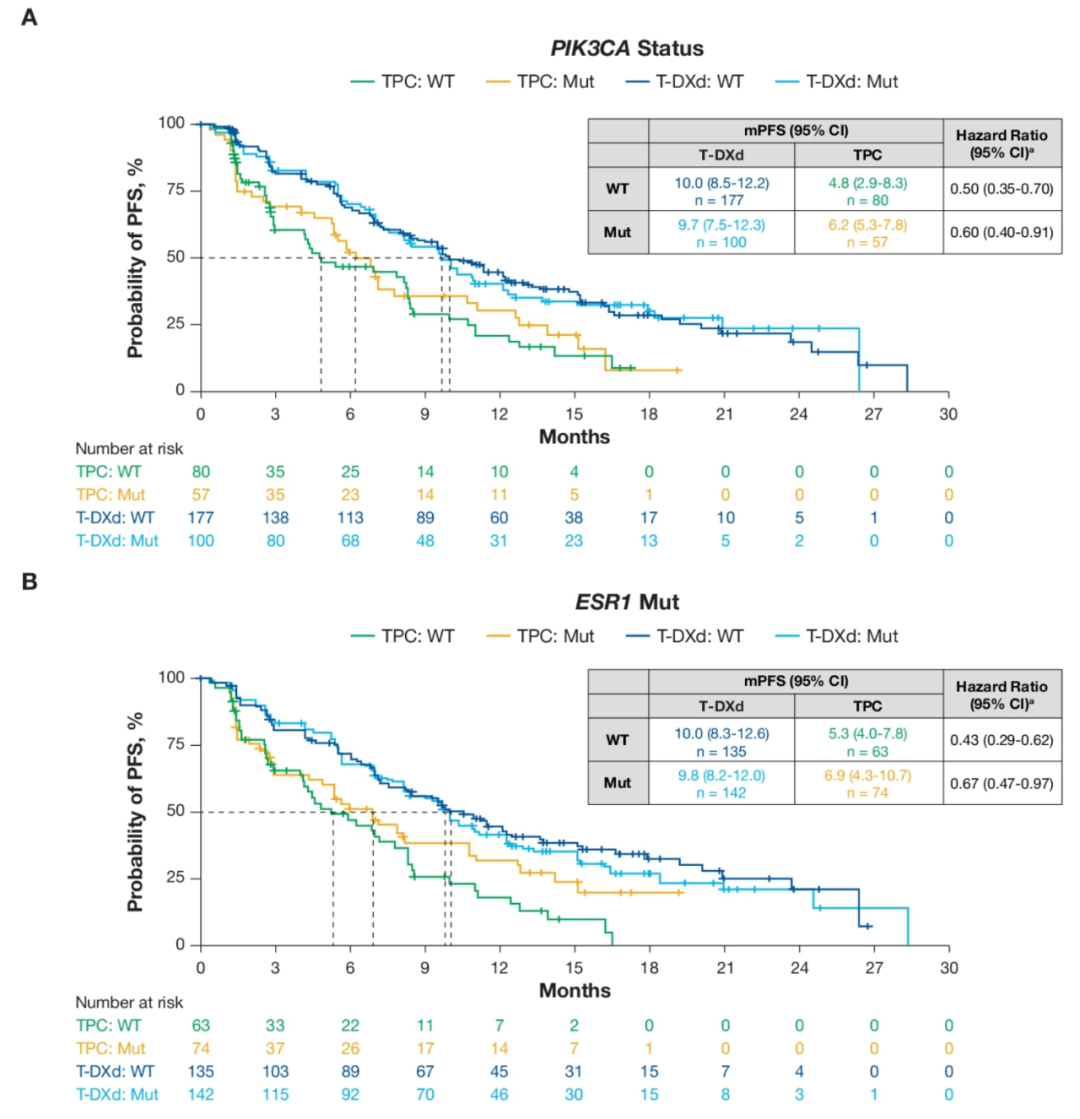 △DB-04研究探索分析:PIK3CA突变或野生型、ESR1突变或野生型患者均可从T-DXd治疗中获益(ASCO 2023;摘要号:1020)