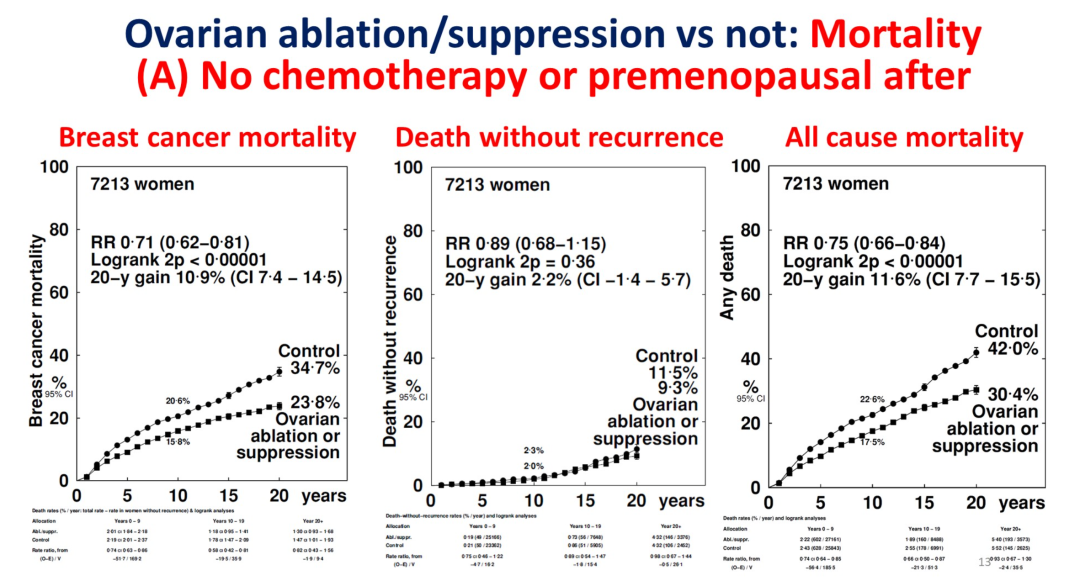 1.Richard G.Gray,et al,.Effects of ovarian ablation or suppression on breast cancer recurrence and survival:Patient-level meta-analysis of 14,993 pre-menopausal women in 25 randomized trials.J Clin Oncol 41,2023(suppl 16;abstr 503).2023 ASCO abs#503.DOI:10.1200/JCO.2023.41.16_suppl.503.