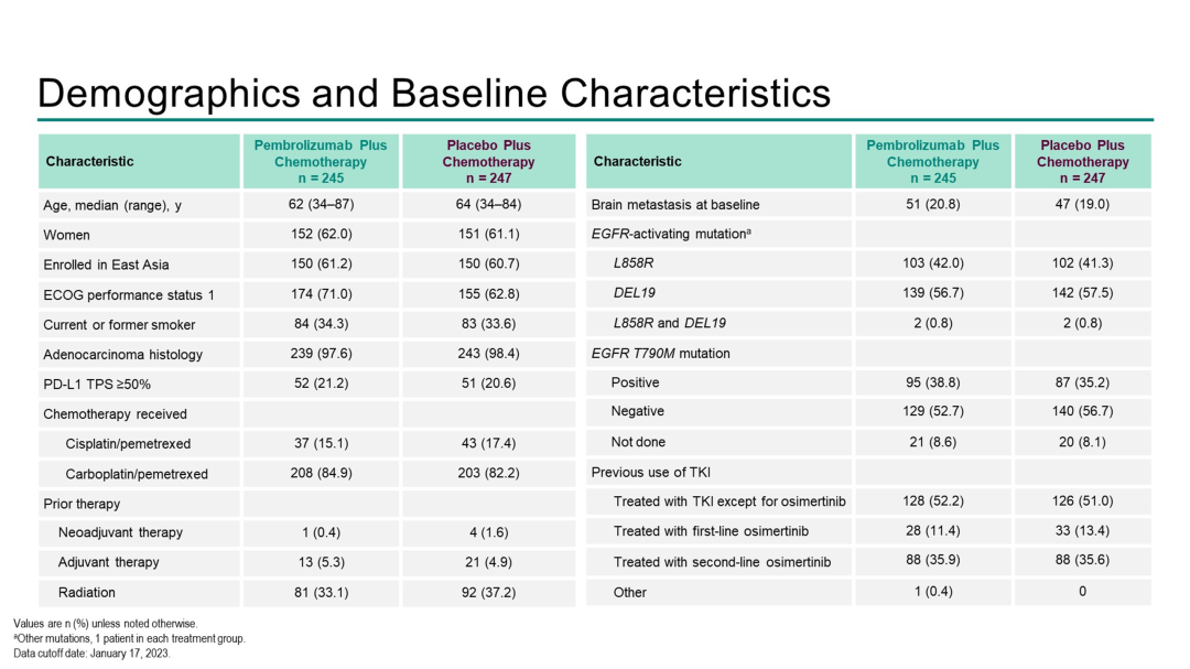 Yang JC,et al. Pemetrexed and platinum with or without pembrolizumab for tyrosine kinase inhibitor (TKI)-resistant,EGFR-mutant, metastatic nonsquamous NSCLC: Phase 3 KEYNOTE-789 study. 2023 ASCO, LBA9000.