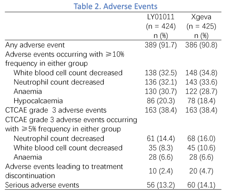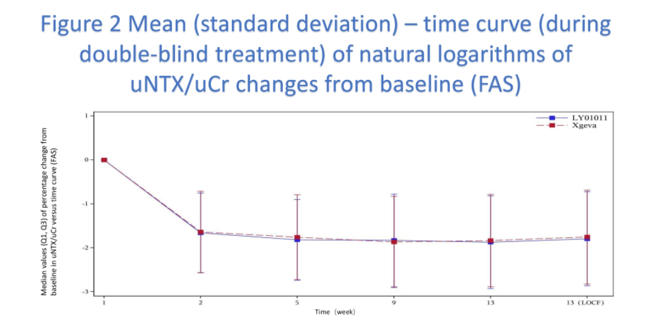 LY01011/CT-CHN-303研究证明,LY01011在降低骨代谢生物标志物NTX方面的疗效与地舒单抗相当,并具有良好的安全性,在研究中未出现非预期不良反应。
