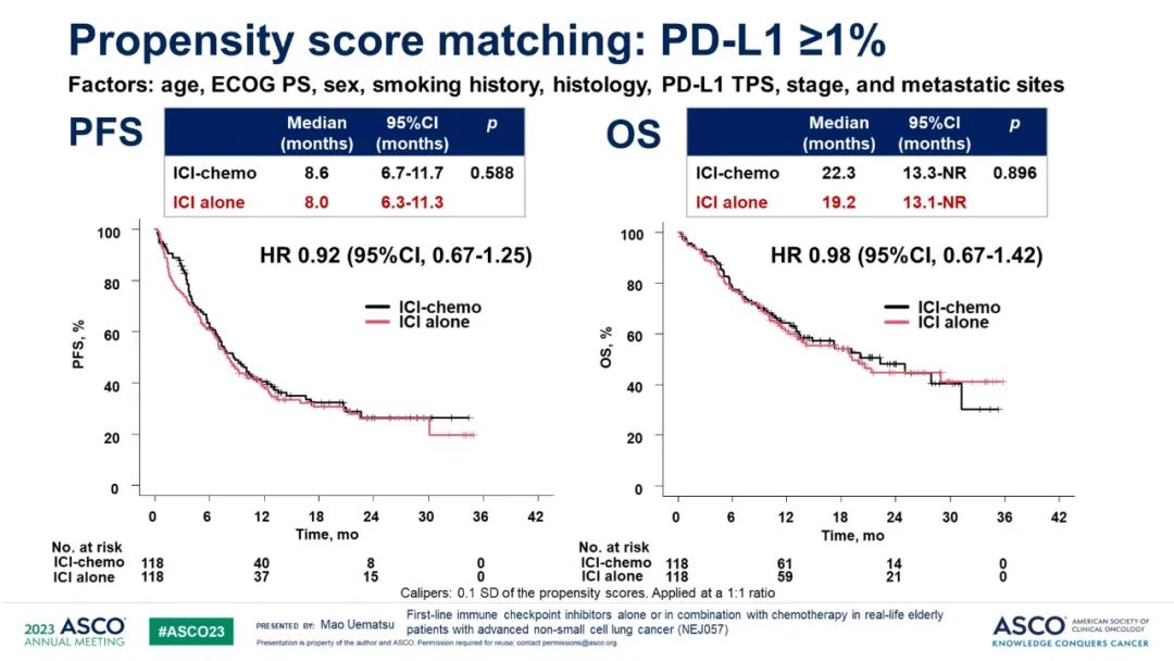 First-line immune checkpoint inhibitors alone or in combination with chemotherapy in real-life elderly patients with advanced non-small cell lung cancer (NEJ057).Abstract 9012, Rapid Abstract Session, 2023 ASCO.