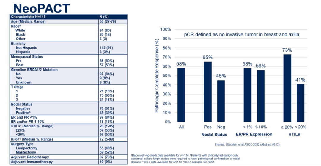 NeoPACT是一项Ⅱ期研究,探索了pembrolizumab+卡铂+多西紫杉醇新辅助治疗三阴性乳腺癌(TNBC)的疗效。2023年ASCO大会上,该研究生物标志物分析结果公布。