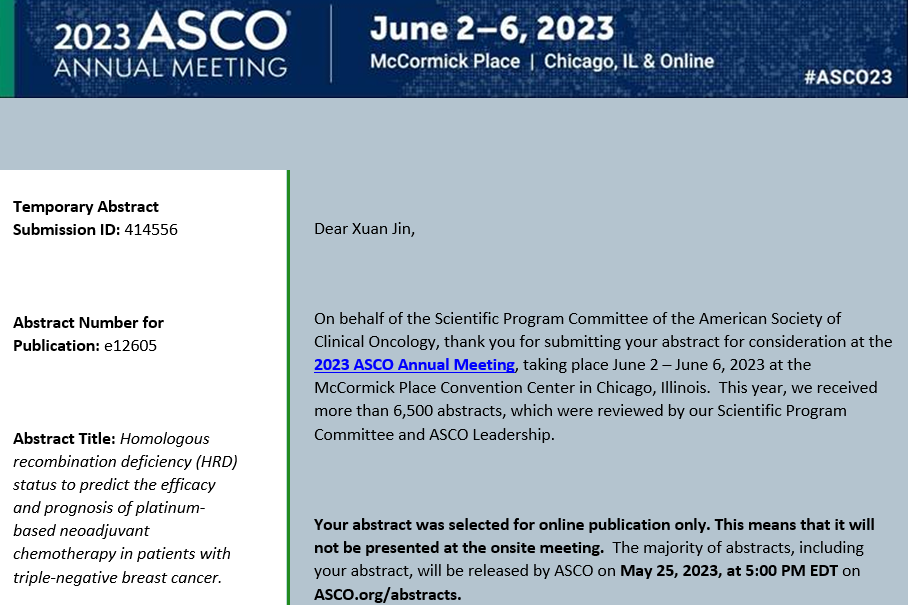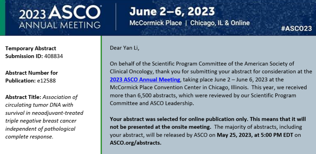 福建医科大学附属协和医院乳腺外科两项研究成果被2023 ASCO年会收录