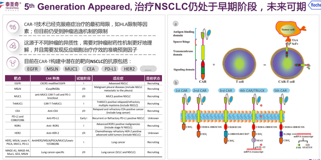 CAR-T技术已经克服癌症治疗的最初局限,如HLA限制等因素,但目前仍受到肿瘤逃逸机制的限制。这源于不同肿瘤的异质性,需要对肿瘤耐药性机制更好地理解,并且需要发现反应细胞治疗疗效的准确预测因子。目前针对非小细胞肺癌的疫苗的研究已经进行了多个大型Ⅲ期试验,显示出良好的毒性和耐受性,我们也期待更好的个性化疫苗的出现。