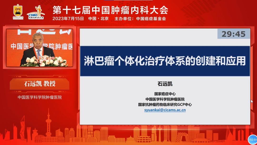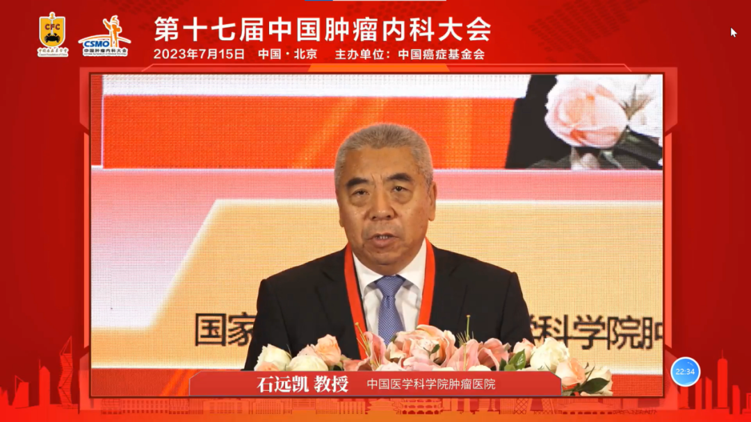 编者按:为了推动肿瘤内科学进一步发展,为肿瘤内科学研究交流提供优质平台,由中国癌症基金会主办的第十七届中国肿瘤内科大会于2023年7月15日在北京人卫酒店召开。本次大会以“精准治疗、全程管理”为主题,旨在提高我国肿瘤诊疗服务水平、推动国内常见肿瘤规范化诊疗和肿瘤精准治疗进程。本届大会以临床实践应用为导向,聚焦精准医学前沿资讯的学术会议风格,涵盖肺癌、消化道系统肿瘤、乳腺癌、淋巴瘤、泌尿肿瘤、头颈部肿瘤等多个病种,内容涉及肿瘤早筛早诊、精准诊断、规范化治疗等临床与转化研究热点。