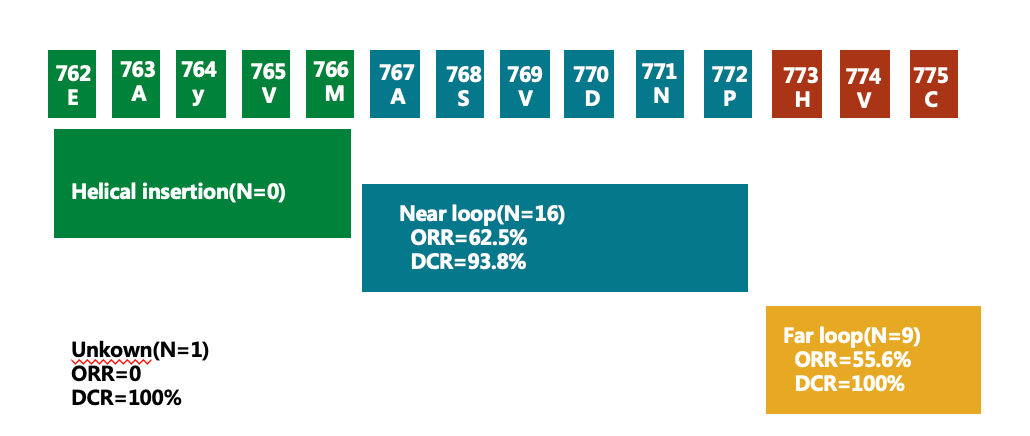 在不同的EGFR ex20ins突变亚型中,YK-029A均展现出良好的疗效,其中近环插入ORR为62.5%,DCR为93.8%;远环插入的ORR为55.6%、DCR为100%。