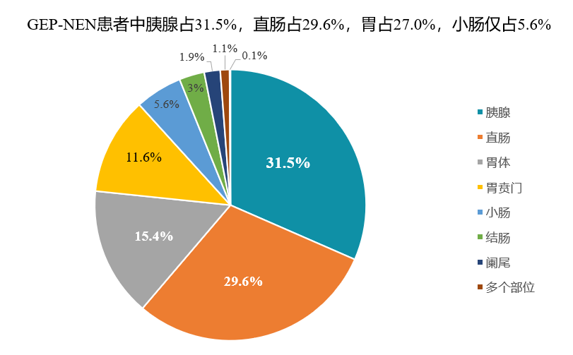 陈洁教授:可能对于公众而言,NENs比较陌生。其实NENs并非新发现肿瘤,其最早于1907年被发现,因起源于肽能神经元和全身可分泌各类激素的神经内分泌细胞,而被称为神经内分泌肿瘤(NENs)[1]。近年来,全球NENs的发病率相较于其他类型肿瘤上升趋势更为显著,美国1973~2012年期间的NENs发病率由1.09/10万增长至6.98/10万,升高6.4倍[2],NENs也逐渐得到了重视。NENs虽可发生在全身各处(除头发、牙齿外),但是以消化系统最为常见,其中胃肠胰神经内分泌肿瘤(GEP-NENs)约占65%-75%;研究发现NENs也存在人种差异,中国人群的好发部位依次为胰腺、直肠和胃[3]。