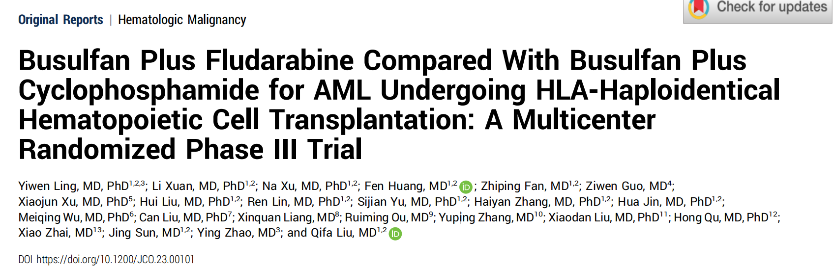 JCO发表丨刘启发教授团队:BuFlu应作为AML患者haplo-HCT的预处理替代方案