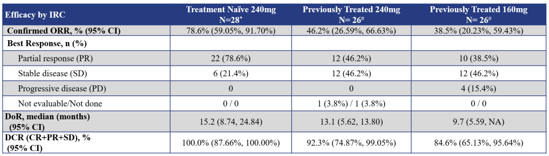 伏美替尼治疗窗口宽——在剂量爬坡阶段,从20mg开始一直到240mg,均未出现剂量限制性毒性(DLT)和最大耐受剂量(MTD)。这意味着伏美替尼采用3倍于常规剂量(80mg qd)仍能保证安全性。提高剂量在EGFRex20ins突变等难治性突变类型患者中取得了更好的疗效。