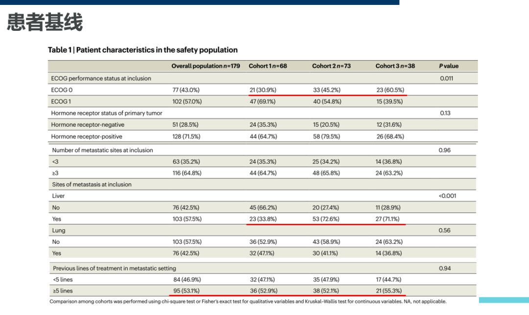 72名患者被分配至HER2过表达组(队列1),74名被分配至HER2低表达组(队列2),40名被分配至HER2 0表达组(队列3)。与先前治疗相比,一些患者在基线时活检的HER2状态发生了变化,因此被重新分配到不同的队列。