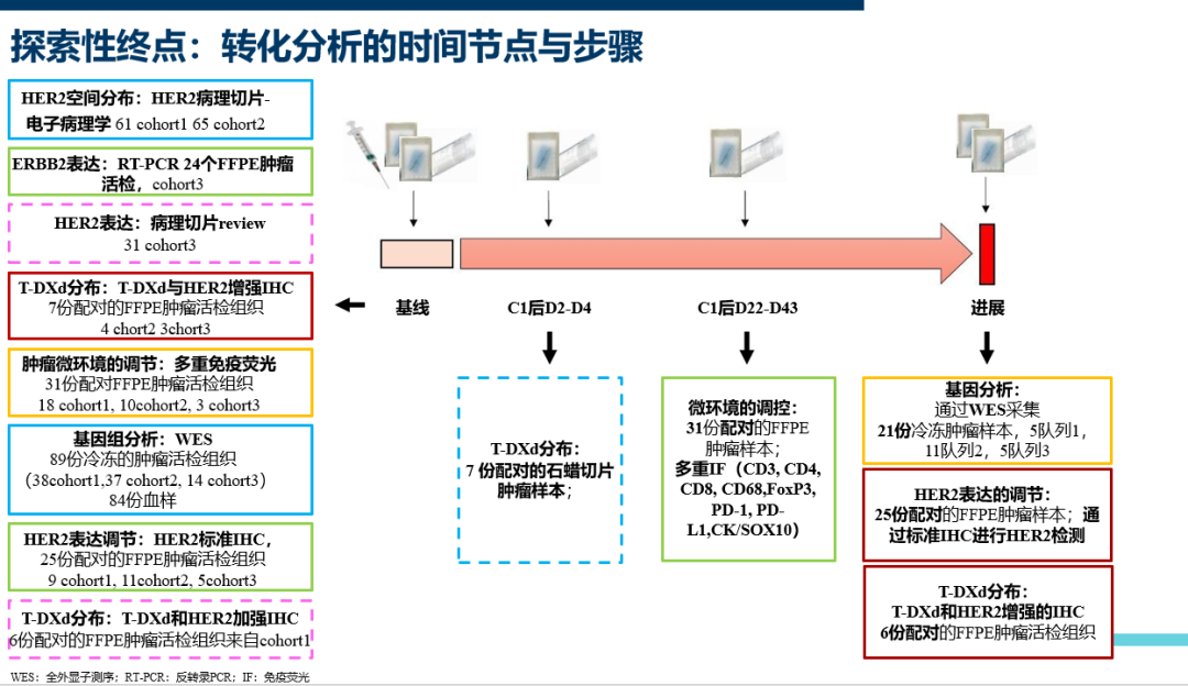 为了解答T-DXd的作用机制及获得性耐药机制等问题,研究者设计了DAISY试验3。DAISY研究旨在:根据不同HER2表达水平评估T-DXd在转移性乳腺癌患者中的疗效,并通过对不同时间点肿瘤样本的生物标志物分析来探索T-DXd治疗反应和耐药情况。
