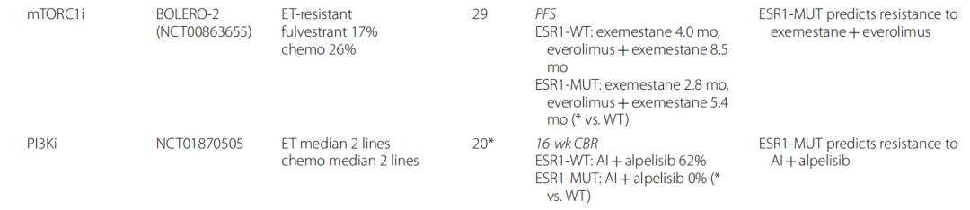 表1.分析基线ESR1突变如何影响临床结果的研究