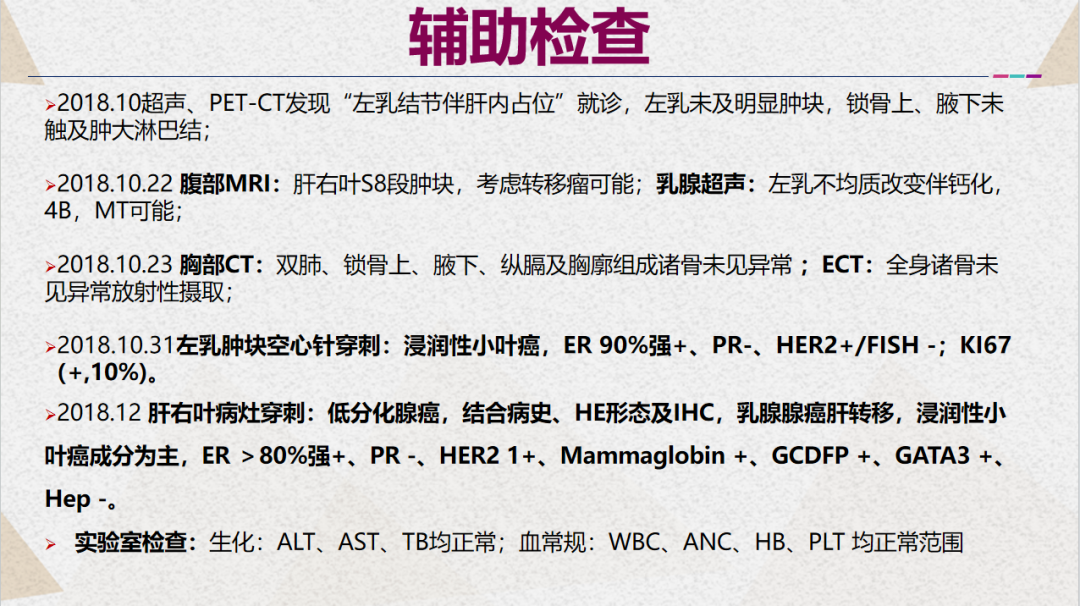 杨谨教授:该患者有宫颈癌病史,左乳癌Ⅳ期同时伴肝转移,其全身治疗方案如何选择?首先有请范林军教授谈谈对该病例的诊断及治疗。