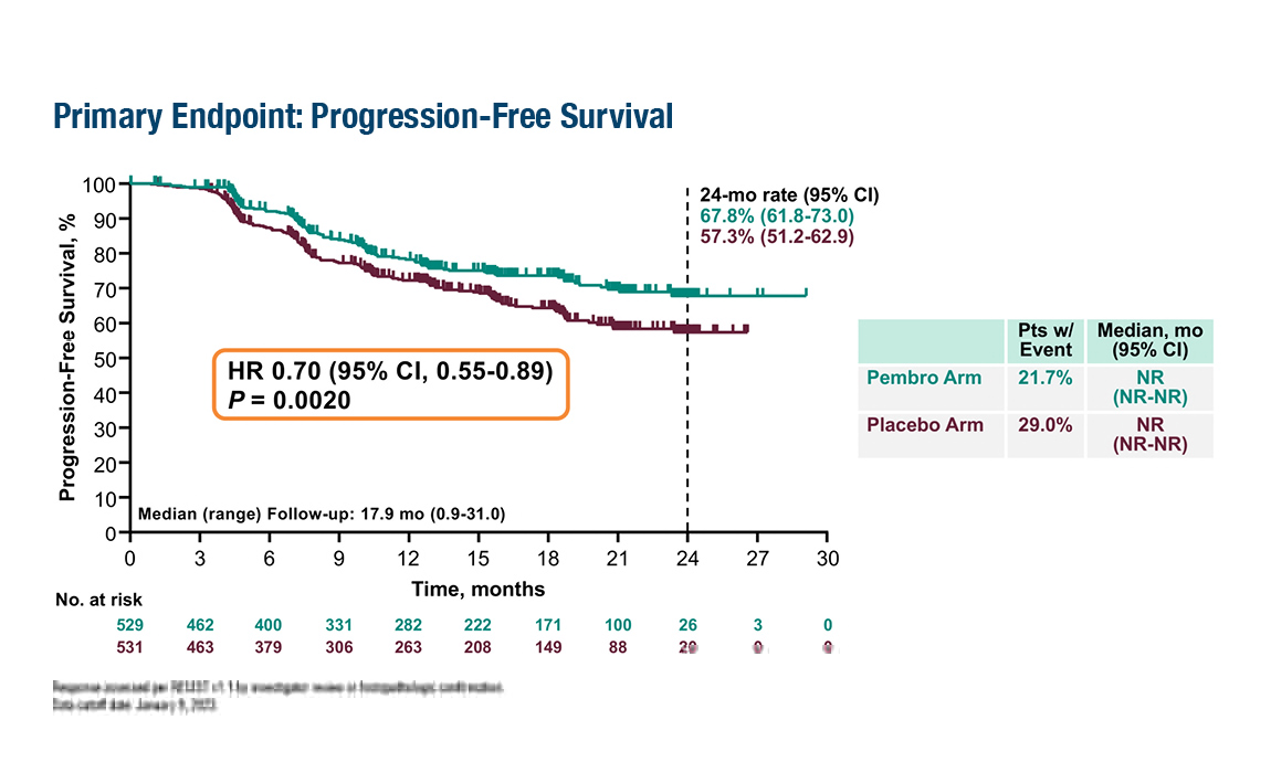 KEYNOTE-A18试验:与化疗组相比,帕博利珠单抗组的PFS显著改善