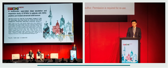 10月22日上午,由复旦大学附属肿瘤医院胡夕春和张剑教授牵头的ADC创新药DP303c治疗HER2阳性晚期实体瘤的Ⅰ期全国多中心临床研究结果首次披露,并由复旦大学附属肿瘤医院杜益群教授以简短口头(Mini Oral)报告形式向全球学者公布了相关成果,引起了广泛关注。研究结果显示,DP303c在经治晚期HER2阳性实体瘤患者中显示出可控的安全性和令人鼓舞的抗肿瘤活性,本文对该研究进行介绍。