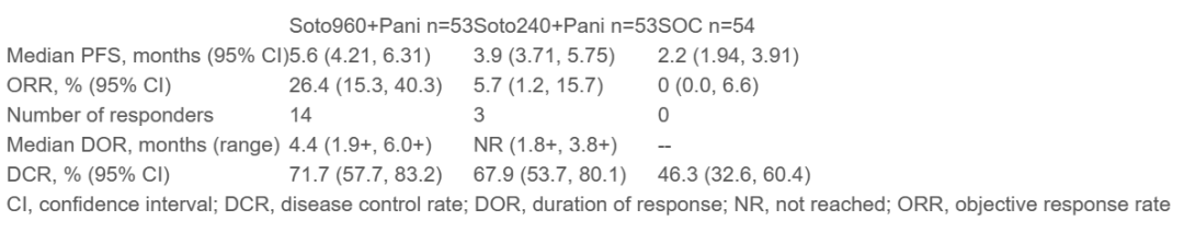LBA10-CodeBreaK 300 III期研究为KRAS G12C突变的转移性结直肠癌(mCRC)患者,揭示了索托拉西布(soto)和帕尼单抗(pani)组合治疗的有望结果。这项研究包括160名具有化疗耐药性的KRAS G12C突变的mCRC患者,结果显示了显著的进展:两个soto+pani组显示了相对于标准治疗(SOC)组更好的PFS;在两个soto+pani组中,疗效相对好,较SOC组的≥3级与治疗相关的不良事件较低。这是首个探讨KRAS G12C抑制剂与EGFR抗体联合用于治疗化疗耐药性mCRC的III期研究。这些结果为管理这种具有挑战性的结直肠癌提供了新的希望。