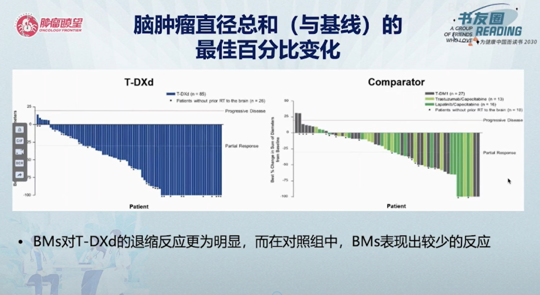 与基线相比,T-DXd组脑转移患者退缩反应更为明显,而在对照组中,脑转移患者表现出较少的反应。