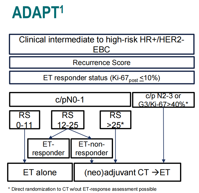 ADATP系列伞型研究是针对早期乳腺癌个体化降阶梯治疗及生物标志物探索的前瞻性研究,其主要依据HR和HER2两个治疗相关靶点开展,其中ADAPT HR+/HER2-是亚研究之一。近年来,相继发表的Rxponder、MINDACT、ADAPT等系列研究均为激素受体阳性乳腺癌豁免化疗提供了依据,尽管早期Luminal型乳腺癌患者预后相对较好,但仍有约20%的病例治疗后复发,这提示我们Luminal型乳腺癌中可能存在侵袭性较高亚组,因此,对于这类患者进行准确的预后评估以指导辅助治疗决策至关重要。