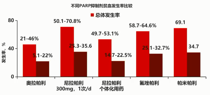 2023版CRA共识首次强调,靶向药物PARP抑制剂也会引起血液不良反应,可能会导致贫血发生。PARP抑制剂可靶向作用于PARP1、PARP2、PARP3和PARP13,如PARP1调节骨髓或血液系统的细胞分化,PARP2在调节红细胞生成过程发挥作用[1,4,5];不同的PARP抑制剂贫血发生率存在一定差异,发生率为21%至70.8%不等。同时,免疫抑制剂也会引起血液系统不良反应;由于肿瘤及其并发症、其他抗肿瘤治疗均可导致血细胞减少,因此在诊断免疫相关的血液系统不良反应时应排除这些因素[1]。