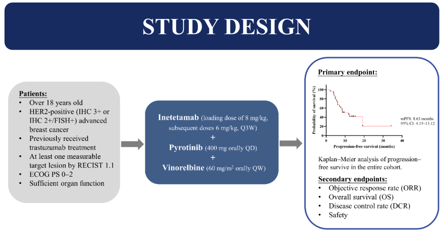 题目:伊尼妥单抗联合吡咯替尼及口服长春瑞滨治疗HER2阳性复发转移乳腺癌患者的一项单臂Ⅱ期临床研究