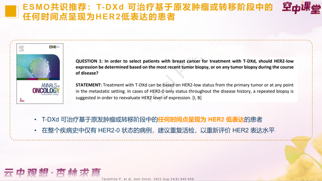 编者按:DESTINY-Beast04(DB-04)研究为HER2低表达乳腺癌带来首个有效的抗HER2治疗方案,使得HER2低表达成为乳腺癌可靶向治疗亚型。然而,临床中HER2低表达乳腺癌存在时间和空间异质性,T-DXd能否有效克服这些肿瘤异质性?本期《空中课堂》中,复旦大学附属肿瘤医院张剑教授将从HER2低表达时空异质性、T-DXd的药物机制、DB-04研究的亚组分析以及ESMO HER2低表达乳腺癌专家共识等方面进行深入剖析。