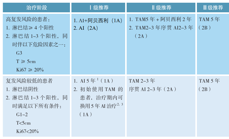 对于绝经后患者,同样需要根据患者复发风险选择AI±阿贝西利、TAM±阿贝西利等方案。