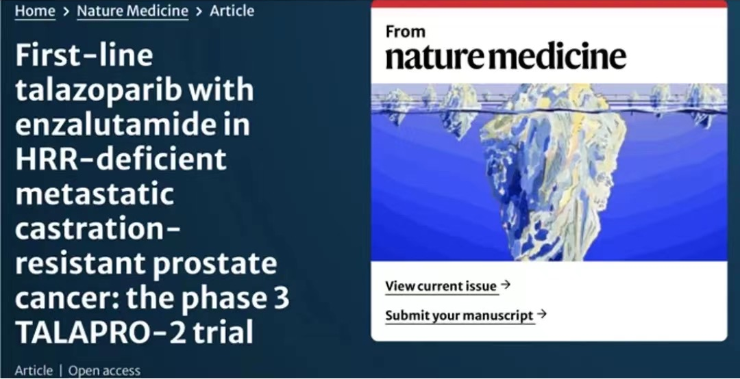 12月4日,Nature Medicine杂志(影响因子87.244)发表了TALAPRO-2研究队列2(HRR突变队列)分析的全文,这也是继TALAPRO-2研究首次分析发表于柳叶刀(Lancet)杂志后,TALAPRO-2研究再次登上顶刊。
