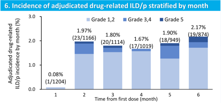 △日本上市后监测研究:T-DXd治疗每个月的ILD/p发生情况