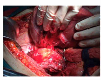 对于腔静脉各端及分支的充分游离和暴露是顺利取栓的重要条件,而各支血管的完全阻断更为关键。但是,下腔静脉一定要阻断吗?既往积累经验告诉我们瘤栓上方下腔静脉完全不用阻断。如下图所示,病例患者具有肾静脉和肾上腺中央静脉双瘤栓,在手术中取肾上腺中央静脉的瘤栓时,其上方腔静脉并没有阻断,而是通过剪开腔静脉直接将瘤栓取出。取栓之后,再把静脉壁切掉,可以获得足够空间后再重新进行阻断,有利于完成后续缝合等多个操作。(备注:视频中有动态手术操作过程)