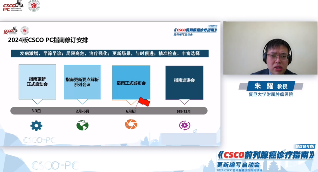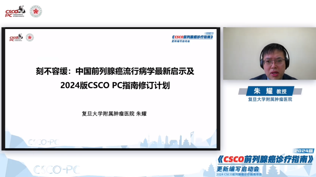在北京大学肿瘤医院郭军教授、四川大学华西医院魏强教授、北京大学第一医院何志嵩教授、山东大学齐鲁医院史本康教授的主持下,复旦大学附属肿瘤医院的朱耀教授分享了《中国前列腺癌流行病学最新启示及2024CSCO前列腺癌诊疗指南更新计划》的专题,指出中国前列腺癌的流行病学特点及本次指南更新的要点: