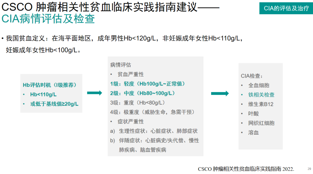 CSCO肿瘤相关性贫血临床实践指南建议——CIA病情评估及检查