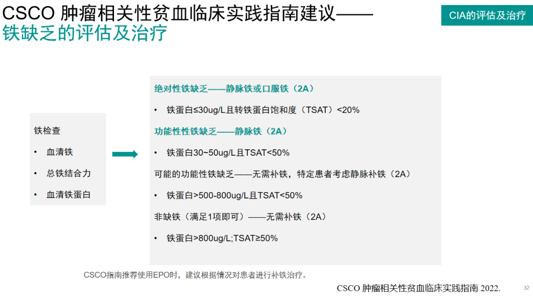 CSCO肿瘤相关性贫血临床实践指南建议——铁缺乏的评估及治疗