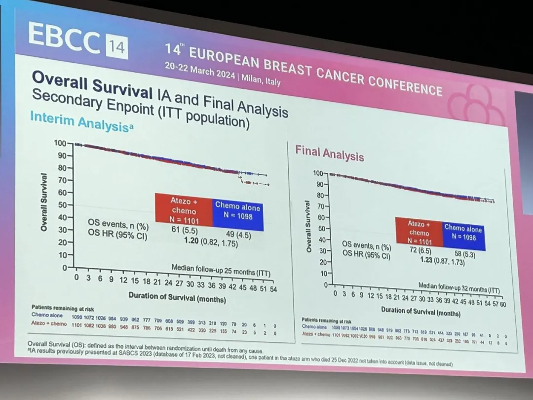 EBCC-14丨IMpassion030研究最终分析数据显示,手术后辅助化疗中加入阿替利珠单抗并不能提高TNBC患者的生存率
