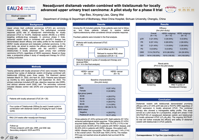 维迪西妥单抗联合替雷利珠单抗新辅助治疗局部晚期上尿路癌:一项Ⅱ期试验的先导性研究