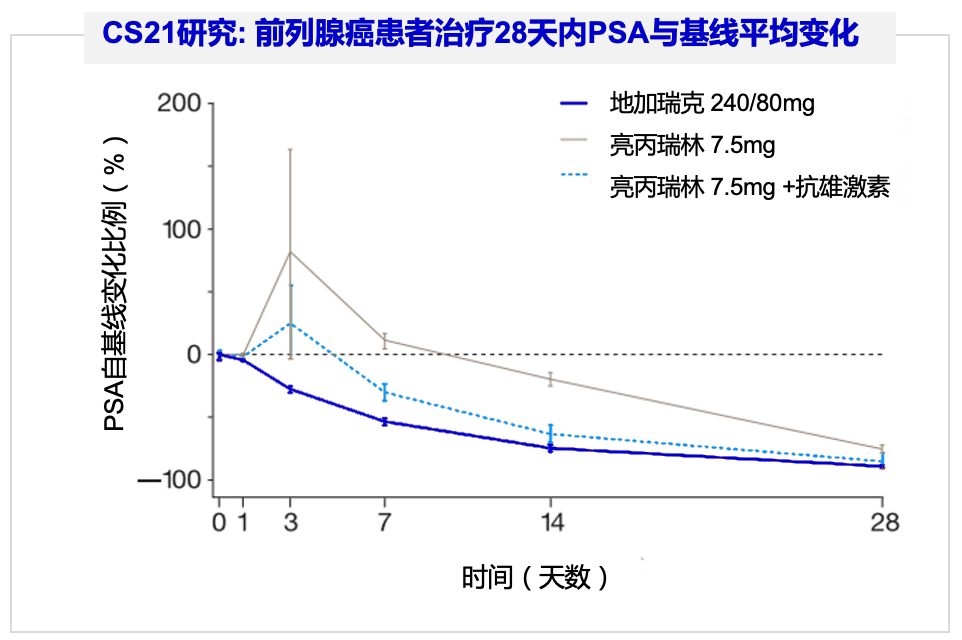 图3.CS21研究:前列腺癌患者治疗28天内PSA与基线平均变化