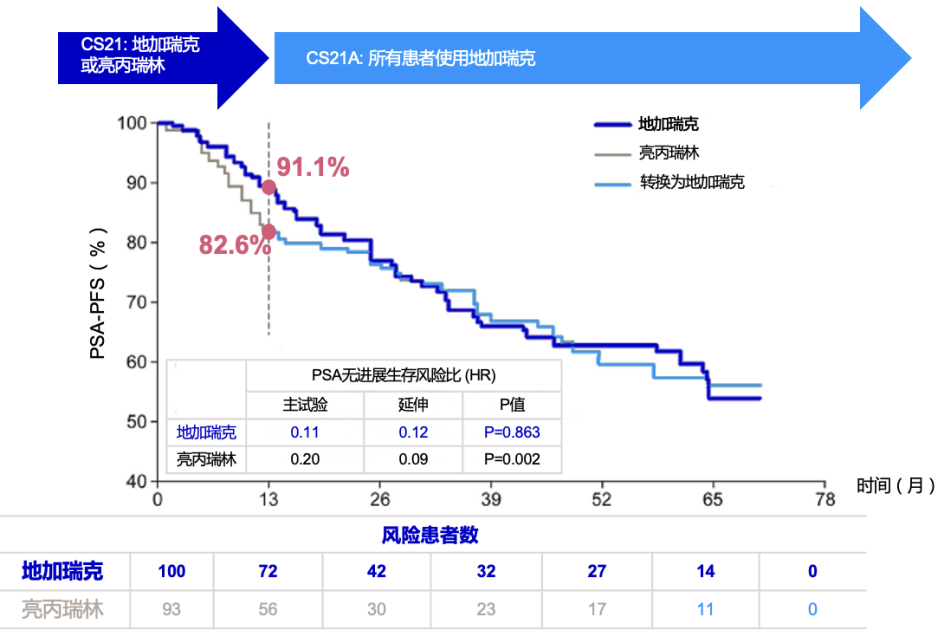 图5.CS21研究及其延伸试验CS21A:5年PSA无进展生存(PSA-PFS)率(GnRH激动剂vs GnRH拮抗剂)
