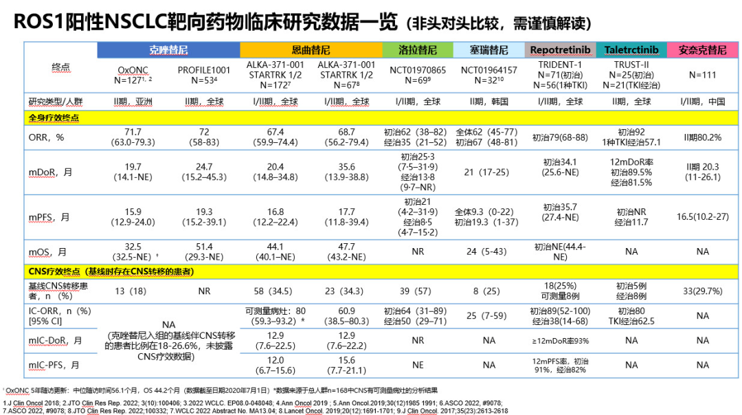 ROS1阳性NSCLC靶向药物的临床研究数据(来自沈波教授讲课PPT)