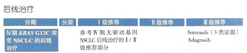 我国KRAS阳性NSCLC的一线标准治疗依然是化疗联合免疫治疗或化疗联合抗血管生成治疗,PD-L1阳性患者可选免疫单药治疗。一线治疗疾病进展后,KRAS阳性NSCLC的治疗选择比较有限,多西他赛或其他化疗药物可作为二线的治疗选择。尽管Sotorasib和Adagrasib在国内没有获批适应症,2024版CSCO非小细胞肺癌诊疗指南将这两个KRAS抑制剂列入IV期KRAS G12C突变NSCLC后线治疗的III级推荐(3类证据),为国内患者提供了一种新的后线治疗选择。