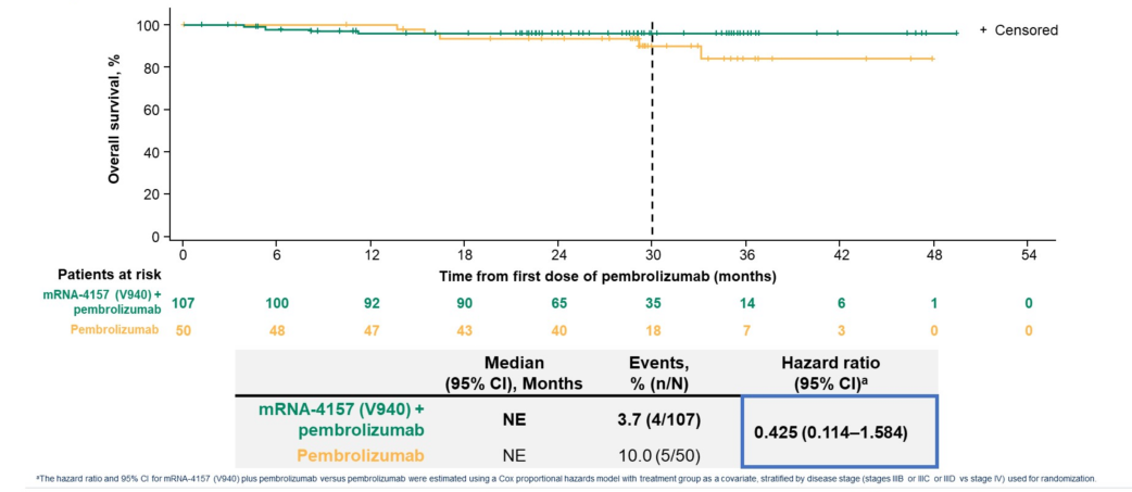 个体化新抗原疗法mRNA-4157(V940)联合帕博利珠单抗治疗已切除黑色素瘤:mRNA-4157-P201(KEYNOTE-942)试验的3年更新数据(摘要号:LBA9512)