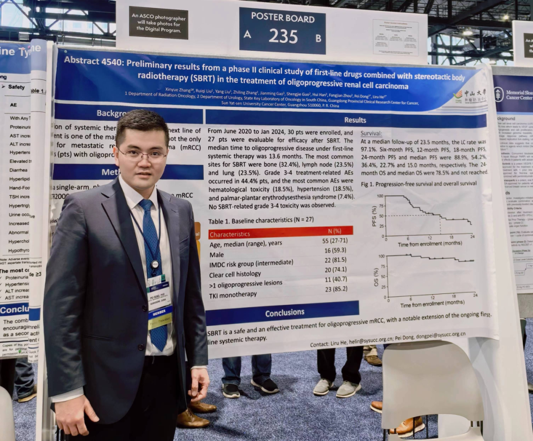 [4]Xinyue Zhang,Ruiqi Liu,Yang Liu,et al.Preliminary results from a phase II clinical study of first-line drugs combined with stereotactic body radiotherapy(SBRT)in the treatment of oligoprogressive renal cell carcinoma.ASCO 2024;Abstract 4540.