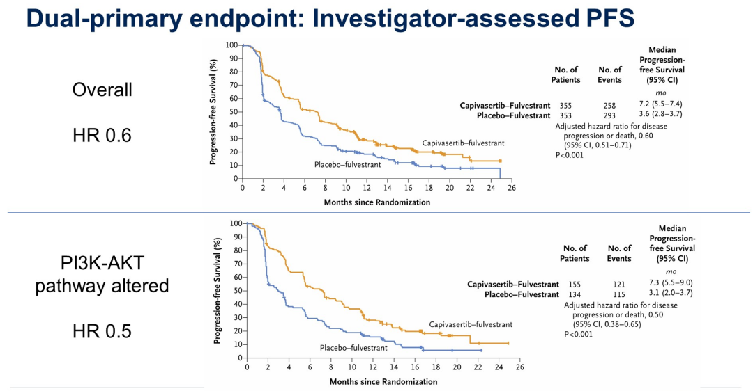 基于该研究的积极结果,卡匹色替已经获FDA批准用于携带PIK3CA-AKT-PTEN突变HR+/HER2-ABC经治患者。卡匹色替有望于今年在国内上市,将改变国内临床实践,为中国乳腺癌患者带来更多延续生命的福音。